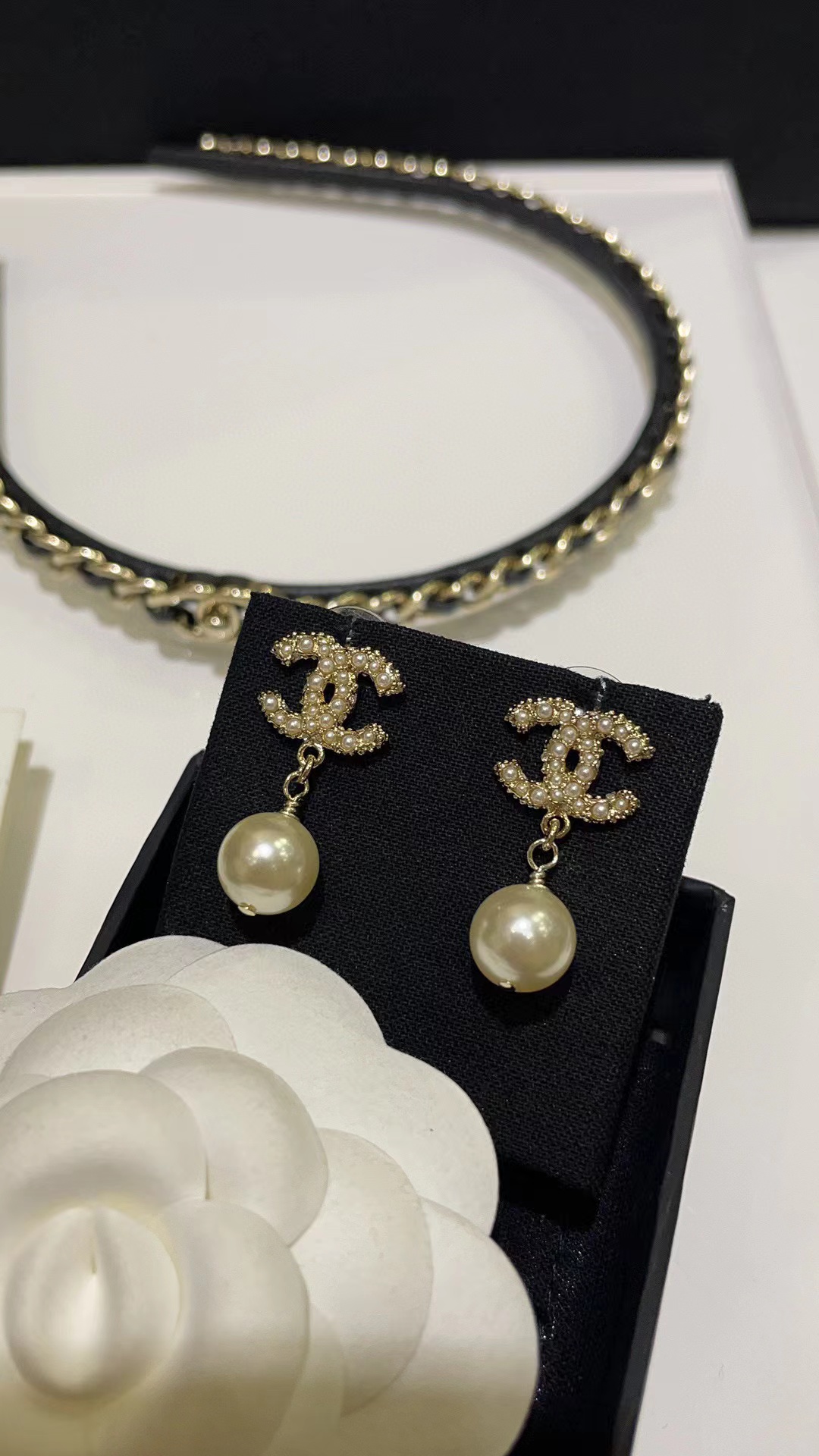 CHANE1 ダブル C パール スタッド ピアス【50%割引+送料無料】