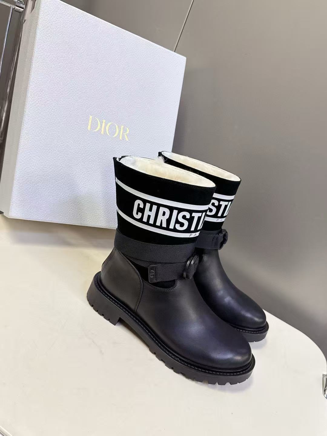 DIOR 高品質レターラウンドトゥレザーアンクルブーツ【50%割引+送料無料】