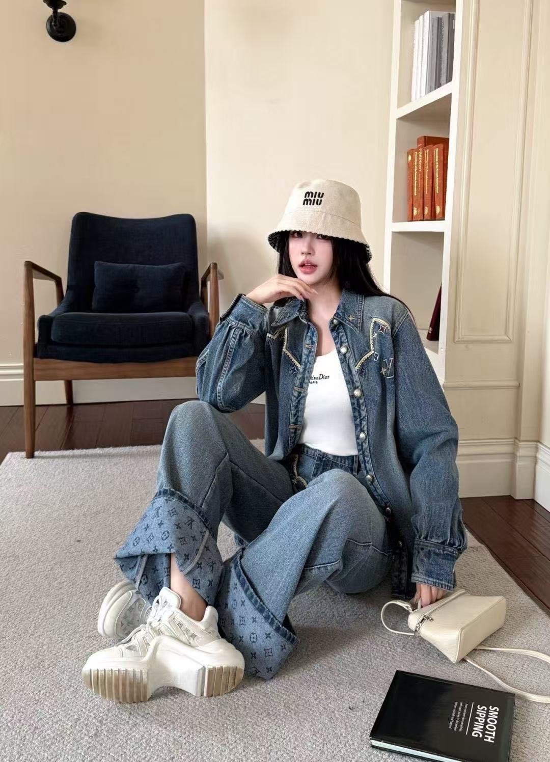 LV刺繍入りデニムトラウザーズ/ジャケット【50%割引+送料無料】